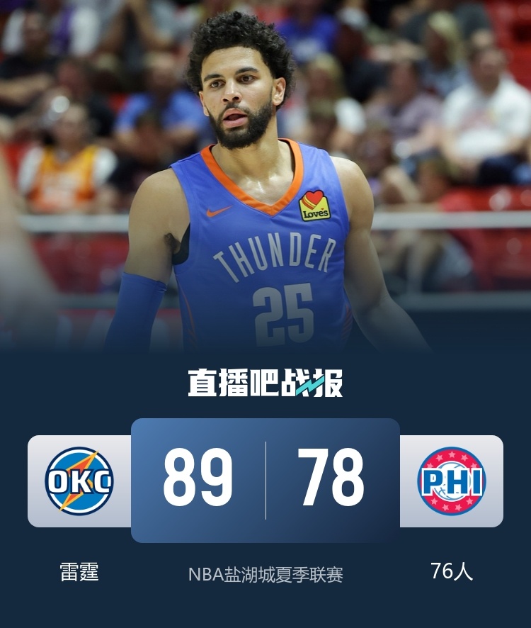 7月8日讯 NBA盐湖城夏季联赛,雷霆对阵76人。