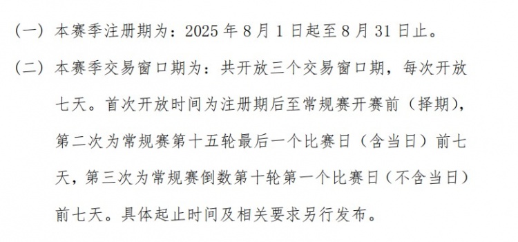 实际上,就转会操作来说,留给各支球队的时间只有5天了,因为按照规定,转会截止时间为注册截止日(8月31号)前48小时,逾期不再受理转会,也就是说,要完成球员转会,球队最晚要在8月29号向联盟提交申请。