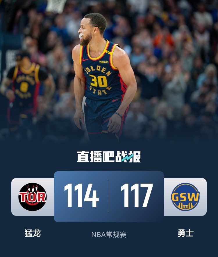 比赛上来,勇士连中两记三分取得领先,不过他们并没有拉开分差,猛龙始终紧咬比分甚至在节末完成反超,次节双方依旧是大打对攻战,单节得分继续突破三十分,不过勇士还是占据了场上的主动权,半场结束时猛龙落后6分;下半场回来,勇士的进攻表现有所下滑,更为糟糕的是库里在对抗中受伤返回更衣室,末节双方一直保持拉锯,比赛悬念打到了最后,关键时刻谢德虽然命中打板三分,巴特勒两罚一中也给了机会,但谢德拿到篮板没看时间还在传球,最终勇士险胜猛龙迎来连胜。