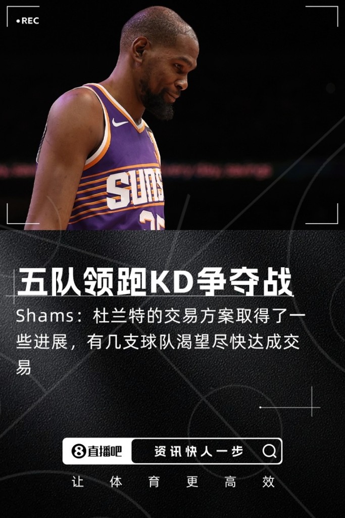 Shams:有球队渴望尽快达成KD交易 火&刺&尼&狼&热正领跑