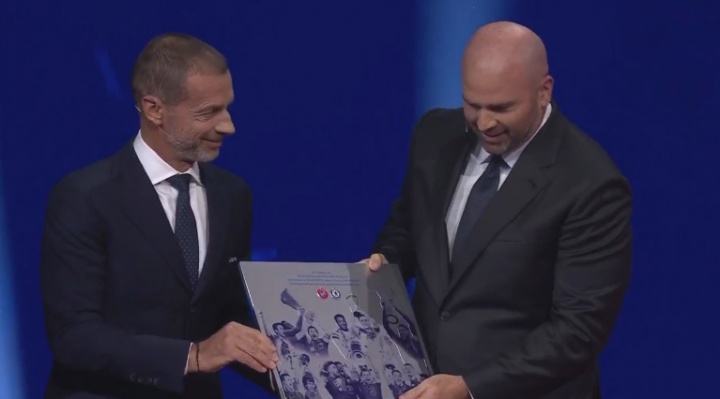 8月29日讯 欧冠抽签仪式上,切尔西获颁特别奖项,用以表彰他们取得的欧战全满贯成就。欧足联主席切费林登台为切尔西俱乐部颁发特别奖项,...
