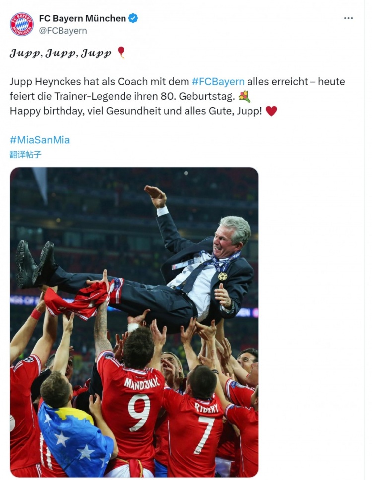 拜仁官方祝海因克斯80岁生日快乐,执教期间斩获9冠+问鼎欧冠